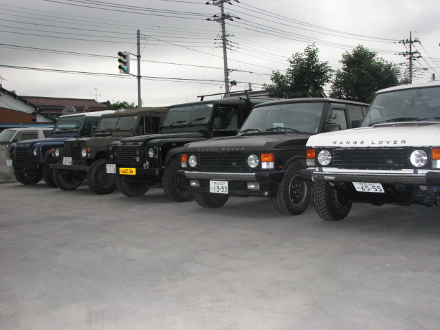 先日当店に、ランドローバーユーザーが集まりましたので、 写真を撮ってみました。 ディフェンダー、クラシックレンジ、ライトウエイトと並べると いい絵になりました。セカンドレンジ、ディスコは工場内でしたので並べませんでしたが、丸目がそろうとかっこいいですね!