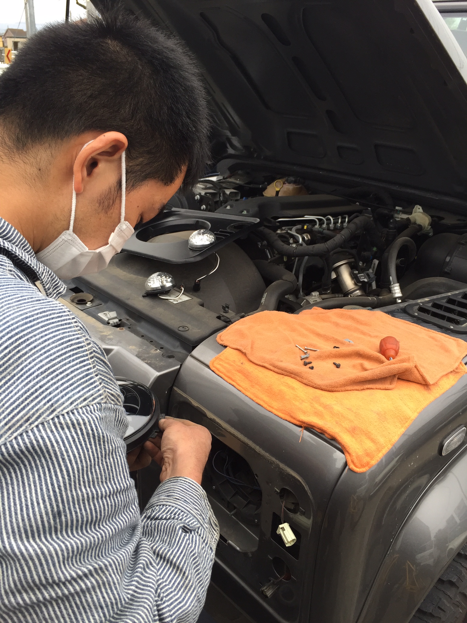 先日、ディフェンダーのユーザー様へJWスピーカーLED取り付けを行いました。